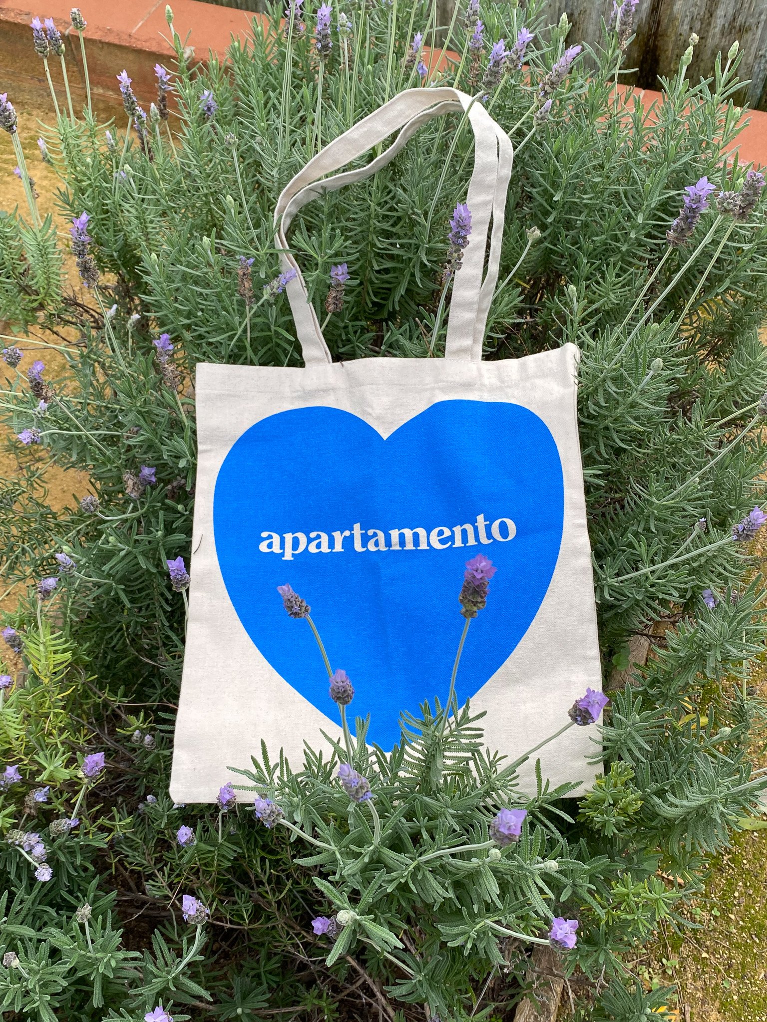 The Apartamento tote returns in a fresh edition: raw cotton canvas stamped with our signature heart, this time burning in blue flame. Get yours for free when you sign up for an Apartamento Membership!