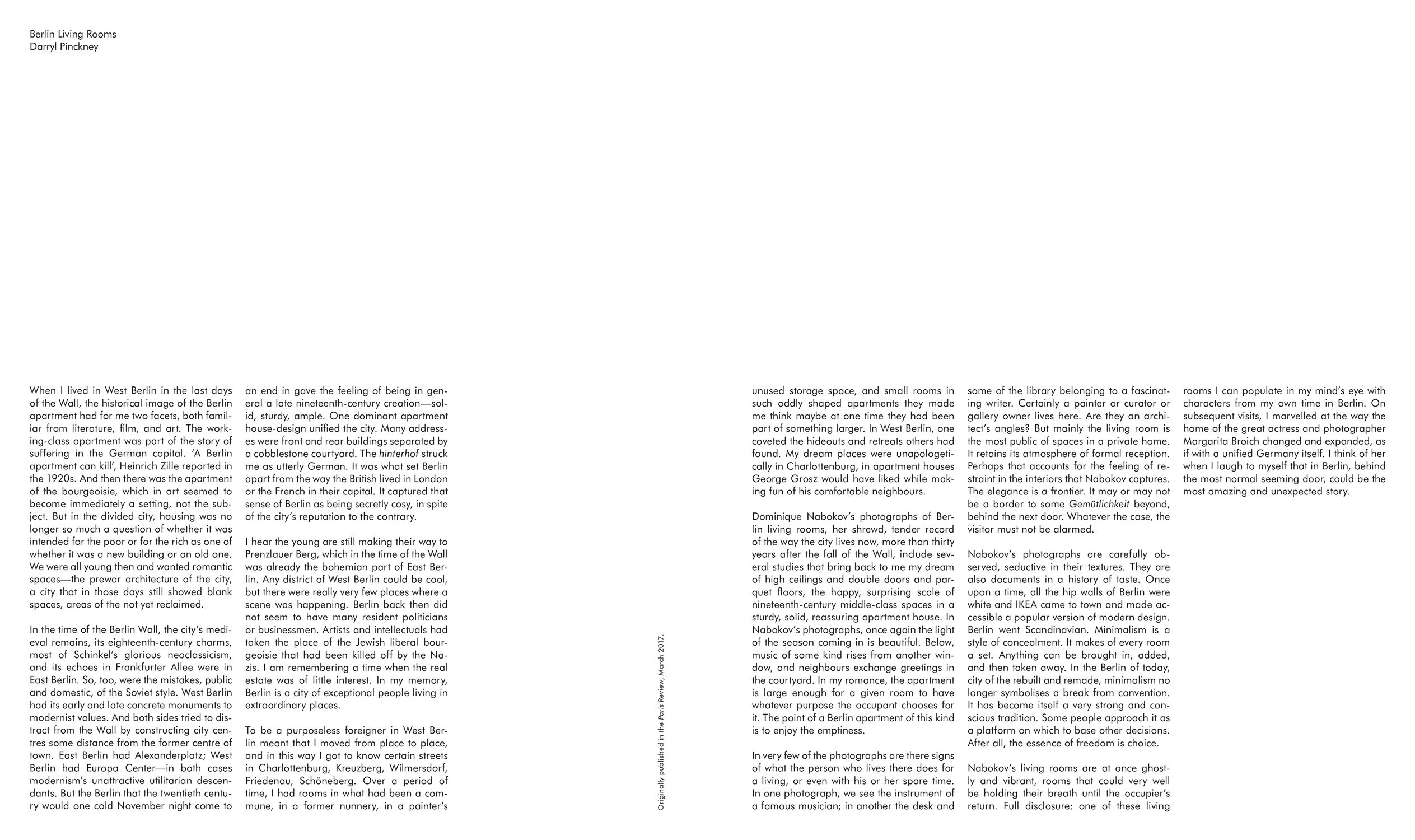 Berlin Living Rooms features original photography by Dominique Nabokov and texts by American novelist Darryl Pinckney and ZEIT magazin editor Christoph Amend.